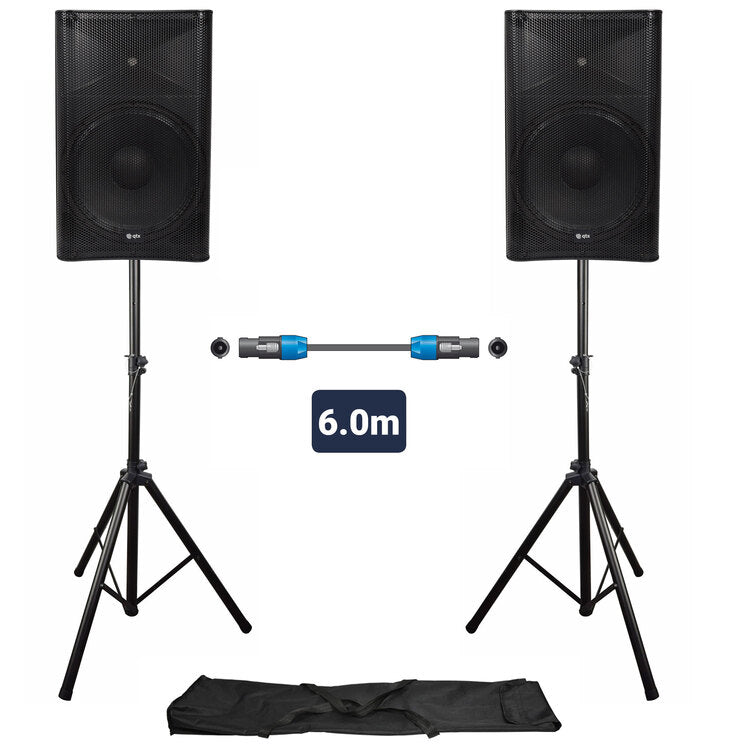 QTX: 300.515UK, Complete PA System, Active Speaker, Bluetooth, Tripod Stands