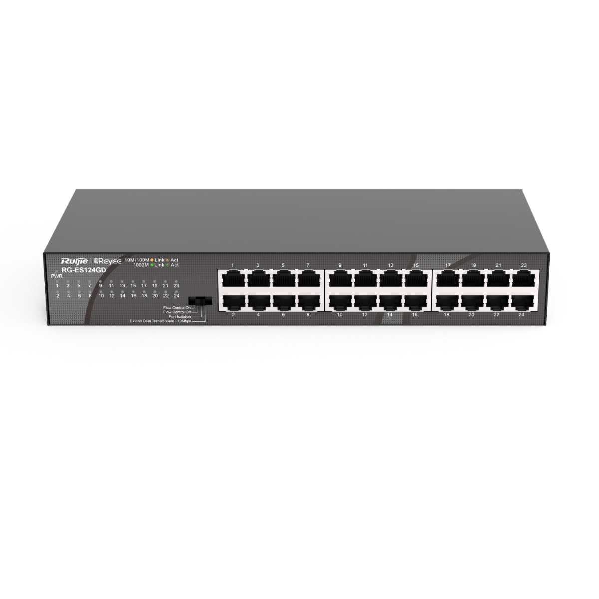 Ruijie: RG-ES124GD, 24xGE Port Unmanaged Desktop Switch, Steel Case, High Reliability, PoE Management