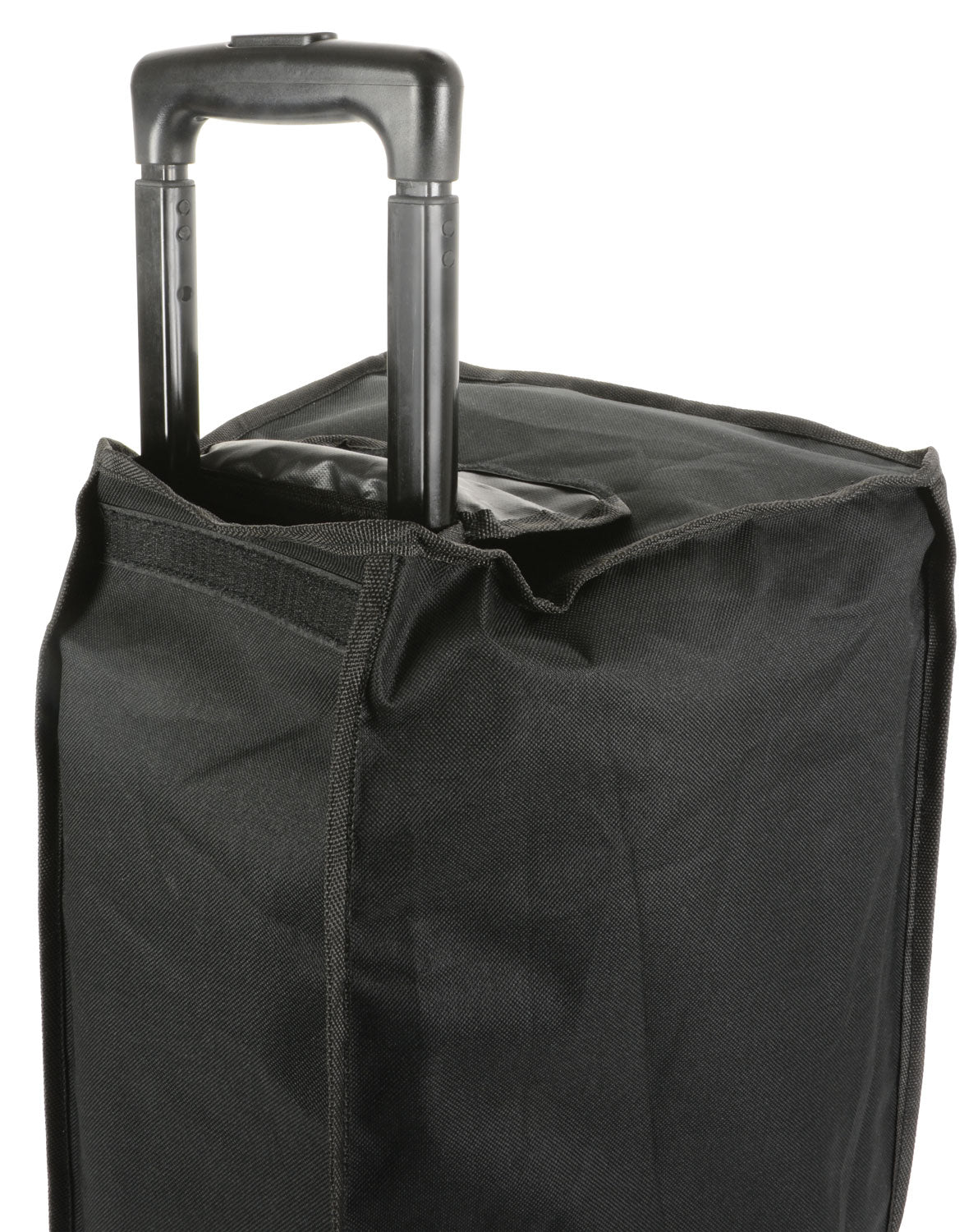 Protective, water-resistant, slip-on covers for the QTX Busker series of portable PA systems, and direct replacements for the covers provided with the Busker-U series of portable PAs. Made from hard-wearing fabric with durable seam binding; access holes to the PA's carrying handles; and a hook-and-loop fastener-secured flap through which to extend or stow the cabinet’s retractable pull handle.