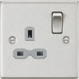 13A 1G DP Switched Socket - Brushed Chrome with Grey Insert