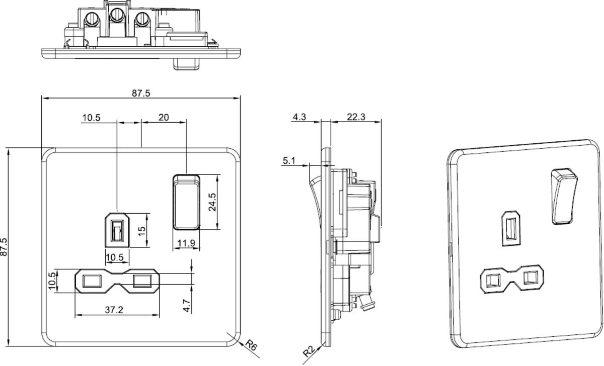- Minimal plate depth of 4.3 mm and a required mounting box depth of 25 mm