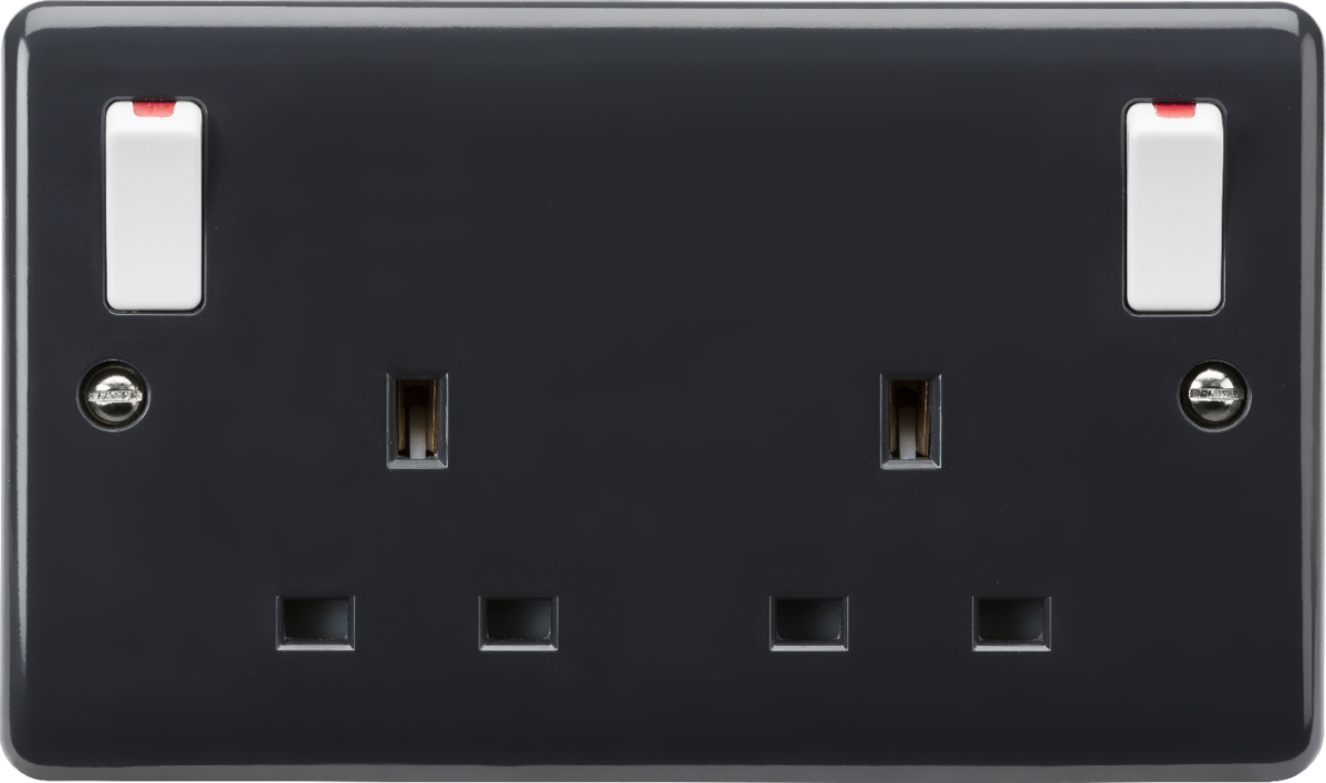 Knightsbridge: PM9001, Curved Edge 13A 2G DP Switched Socket, Anthracite, Part M Compliant, 230V, Thermoset Resin
