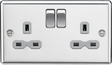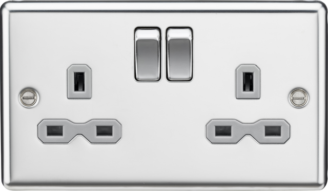 Enhance your home's aesthetic with our 13A 2G DP Switched Socket featuring a polished chrome finish and a contemporary rounded edge design.
