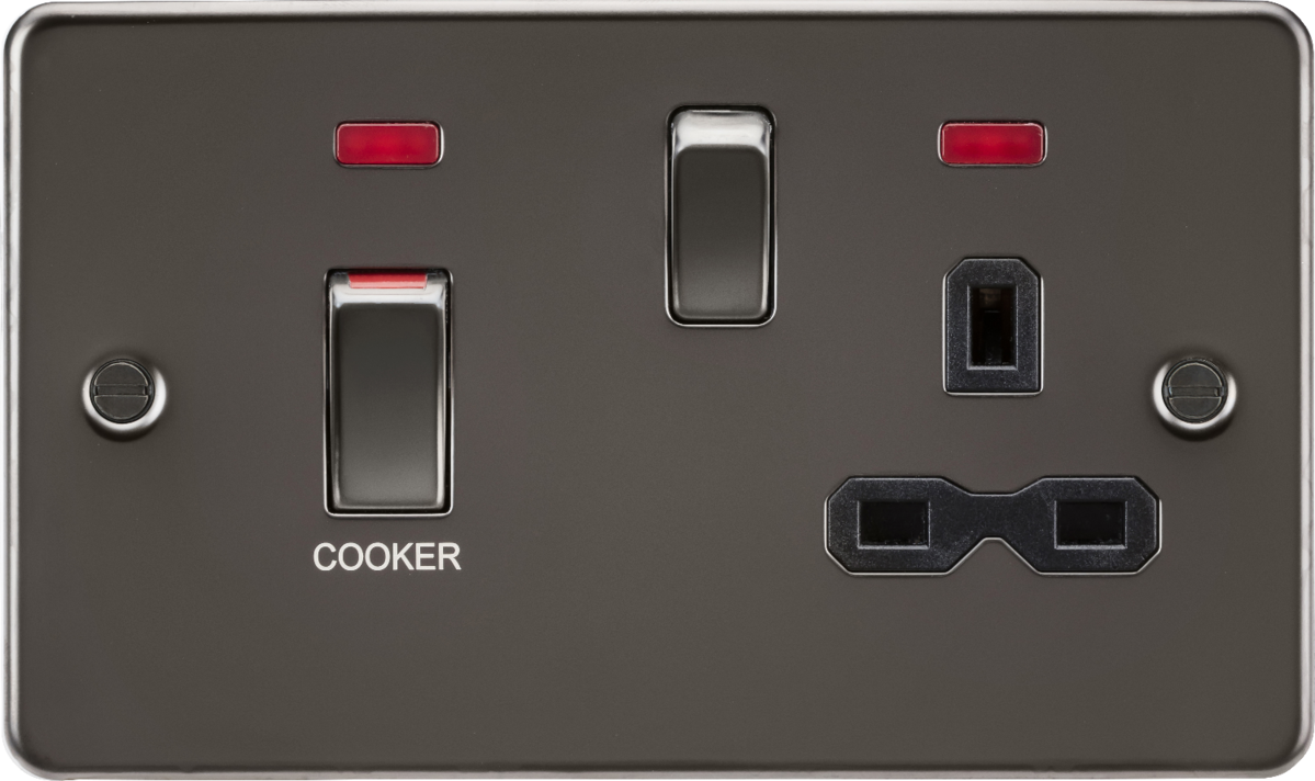 The 45A DP Switch & 13A Socket with Neons in Gunmetal is an essential part of your kitchen appliance control.