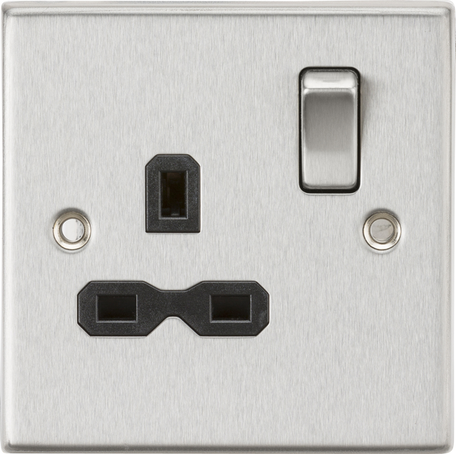Enhance your home with the stylish functionality of our 13A 1G DP Switched Socket. This model boasts a contemporary square edge design in brushed chrome, embellished with a black insert for an elegant touch.