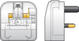 Converts a 2 pin CEE7 Euro plug to a UK mains plug.