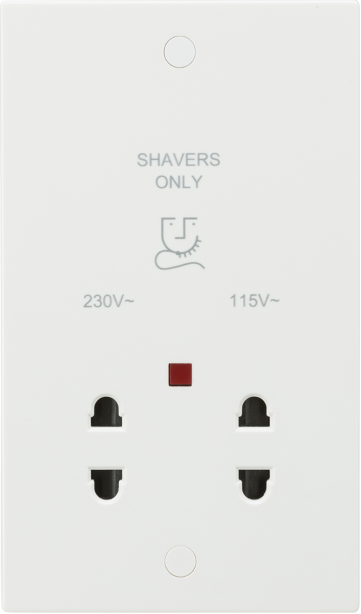 The Knightsbridge 115/230V Dual Voltage Shaver Socket is a versatile and stylish addition to any bathroom or hotel suite. This robust shaver socket features: