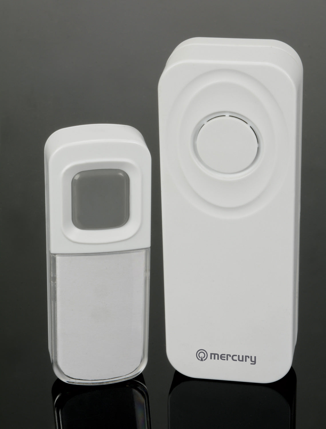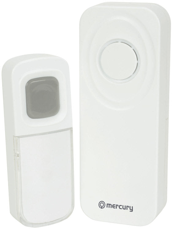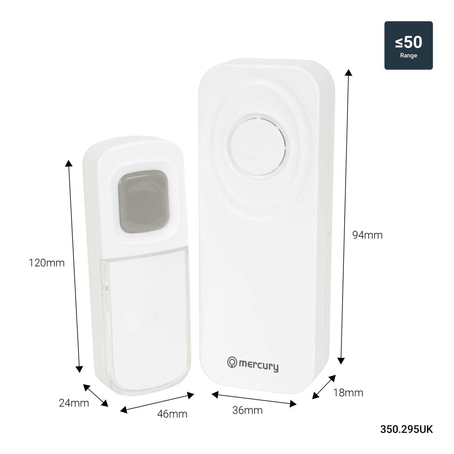 Mercury: 350.295UK, Wireless Waterproof Doorbell, Portable Chime, 50m Range, IP54, White