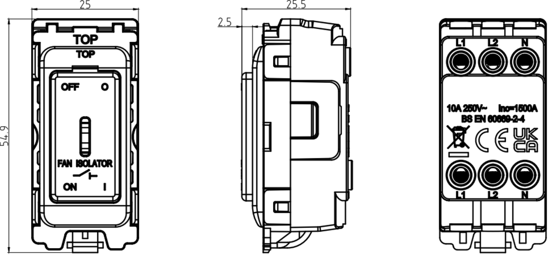 Knightsbridge: CUGM19K, 10A Fan Isolator Key Switch Module, Triple Pole, Key Operation, Matt White, 230V, IP20
