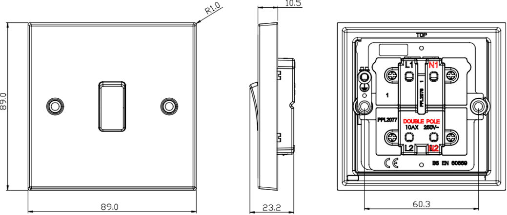 - Requires a minimum mounting box depth of 16mm for installation.