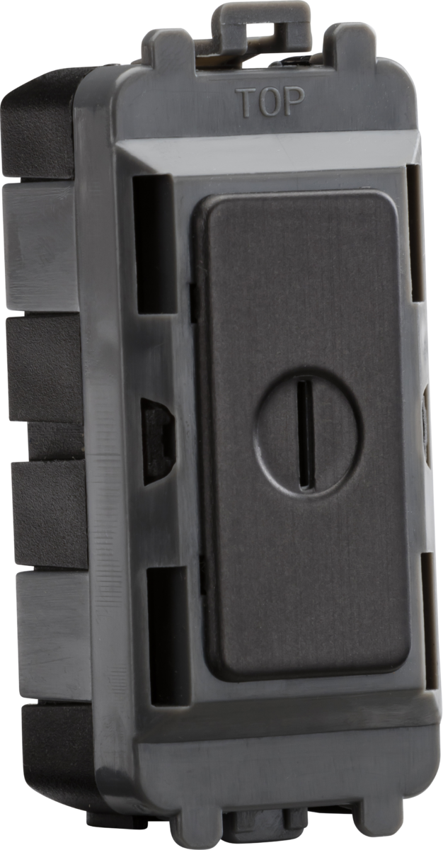 The 20AX 2 Way SP Key Module in Smoked Bronze is designed for use with the Knightsbridge Grid System. This key switch module can seamlessly clip into position from the front of the mounting frames (sold separately).