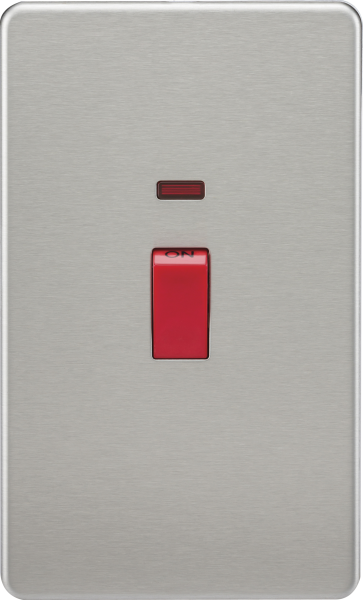 Knightsbridge: SF8332NBC, 45A Double Pole Switch, Neon Indicator, Brushed Chrome Finish, Low Profile Design, 230V, 201 Stainless Steel