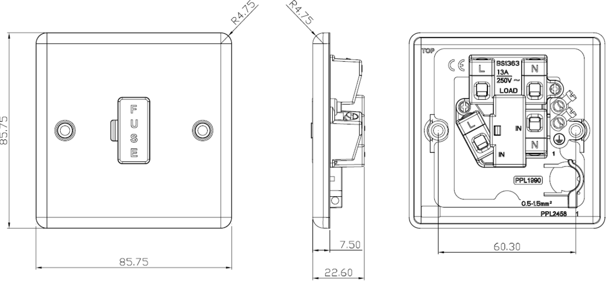 13A Fused Spur Unit - Polished Chrome features