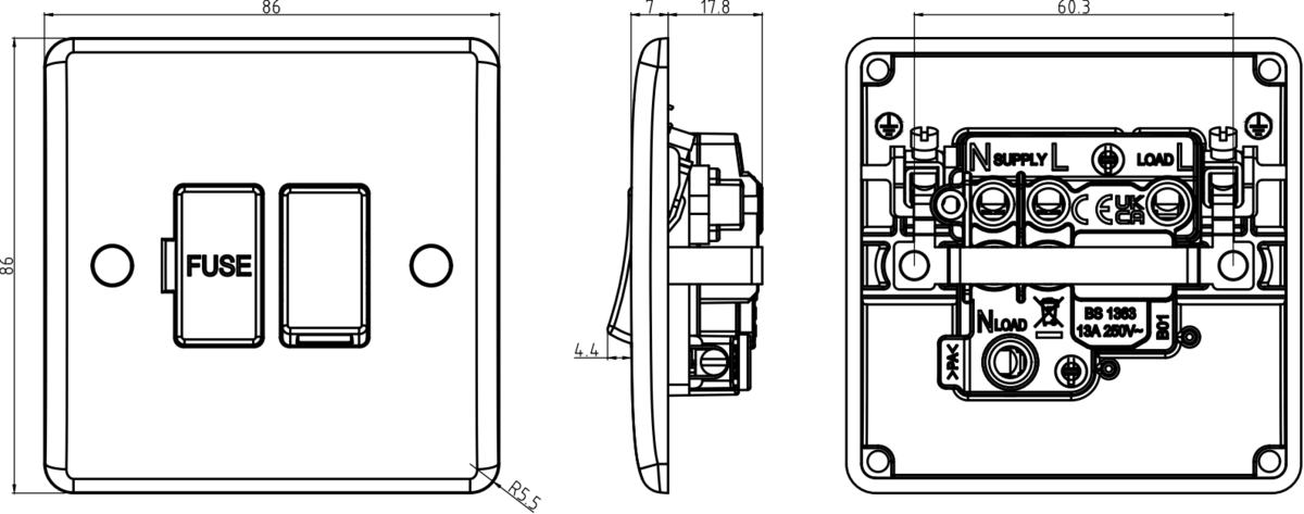 Knightsbridge: PM6300, 13A Switched Fused Spur, Part M Compliant, Anthracite Finish, IP20, Thermoset Resin, 230V