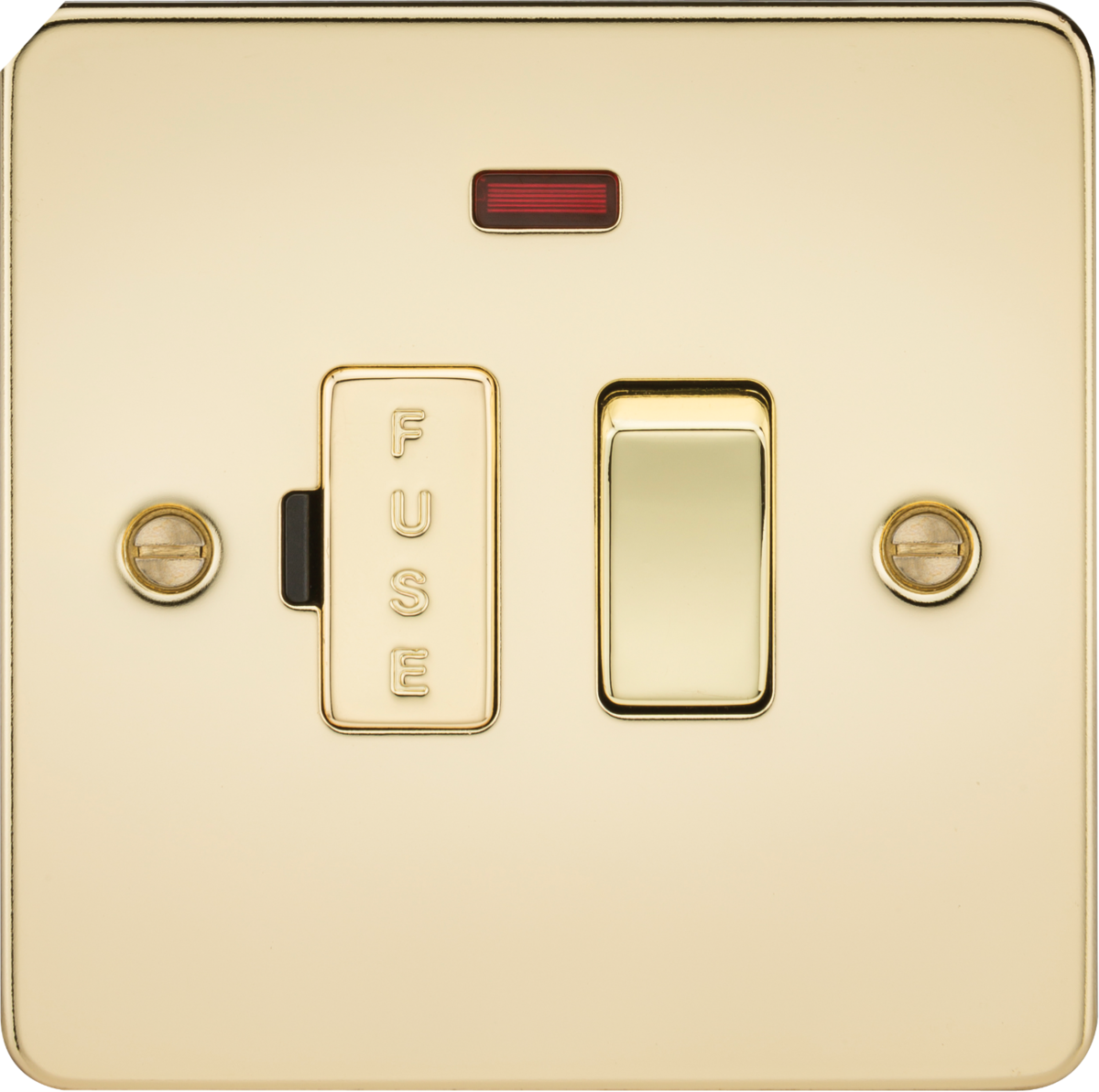 Knightsbridge: FP6300NPB, Polished Brass 13A Switched Fused Spur Unit, Neon Indicator, Ultra Low Profile Design, BS 1363-4 Certified, 230V