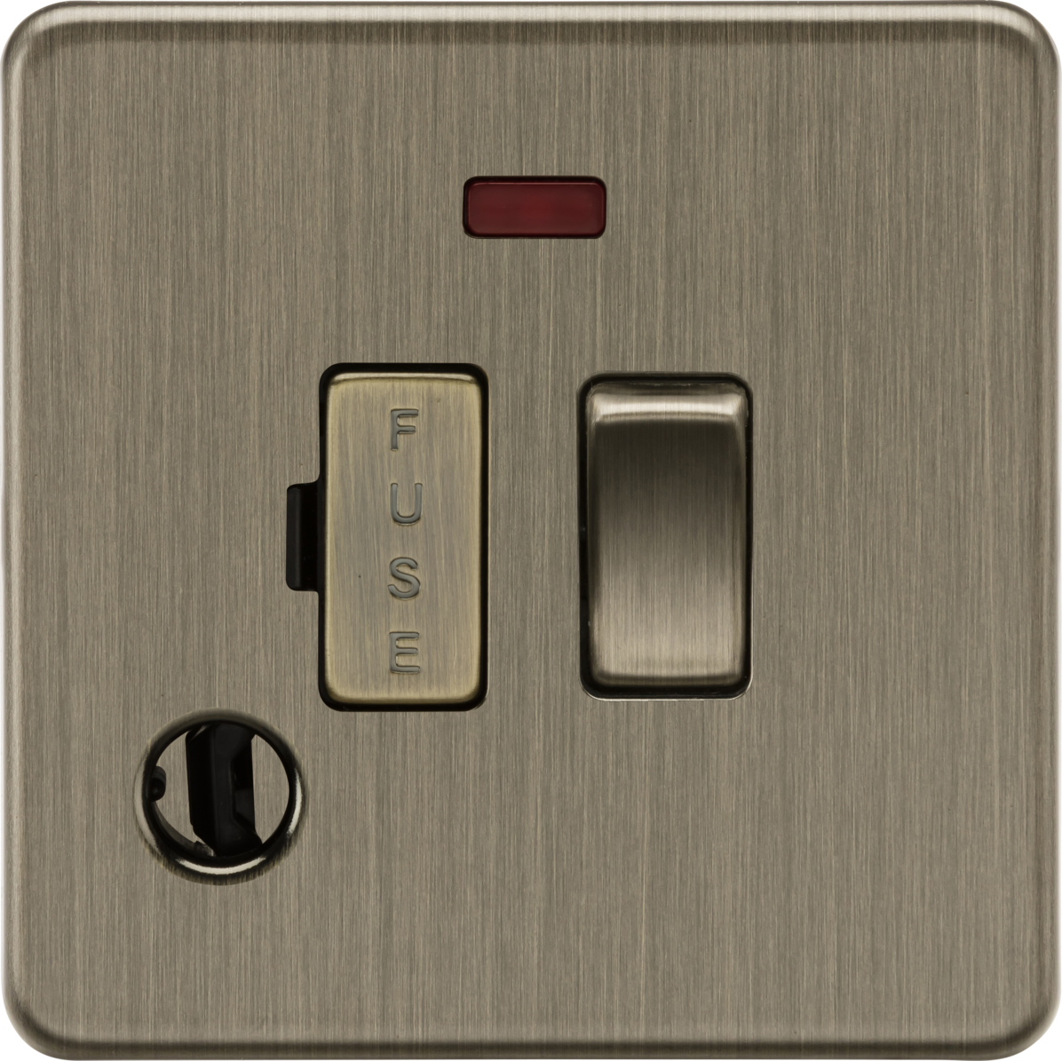Knightsbridge: SF6300FAB, 13A Switched Fused Spur with Neon Indicator & Flex Outlet, Antique Brass Finish, 230V, IP20