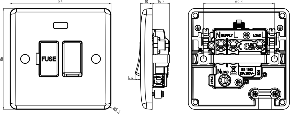 Knightsbridge: PM6300NF, Curved Edge 13A Fused Spur, Neon Indicator, Anthracite Finish, IP20, 230V, Anti-Microbial