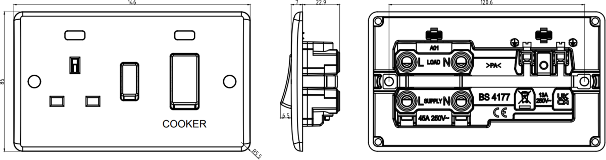 Knightsbridge 45A DP Switch & 13A Socket with Neons features