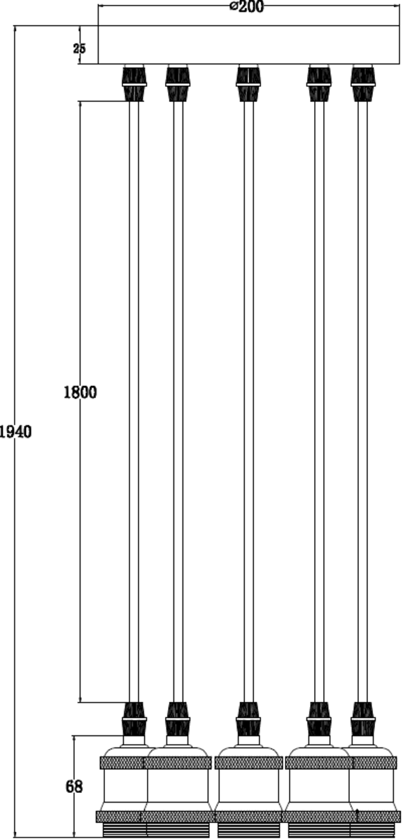 • Maximum Wattage:5x40W (E27 lamps, not included)