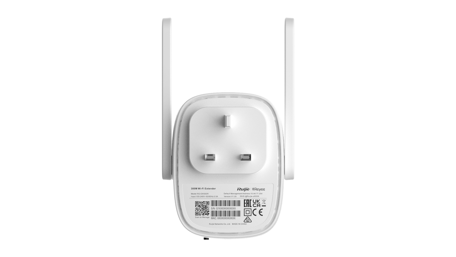 Ruijie: RG-EW300R, 300Mbps Wi-Fi Range Extender, Plug and Play, 2x Signal Boost, Multiple Wireless Modes, White