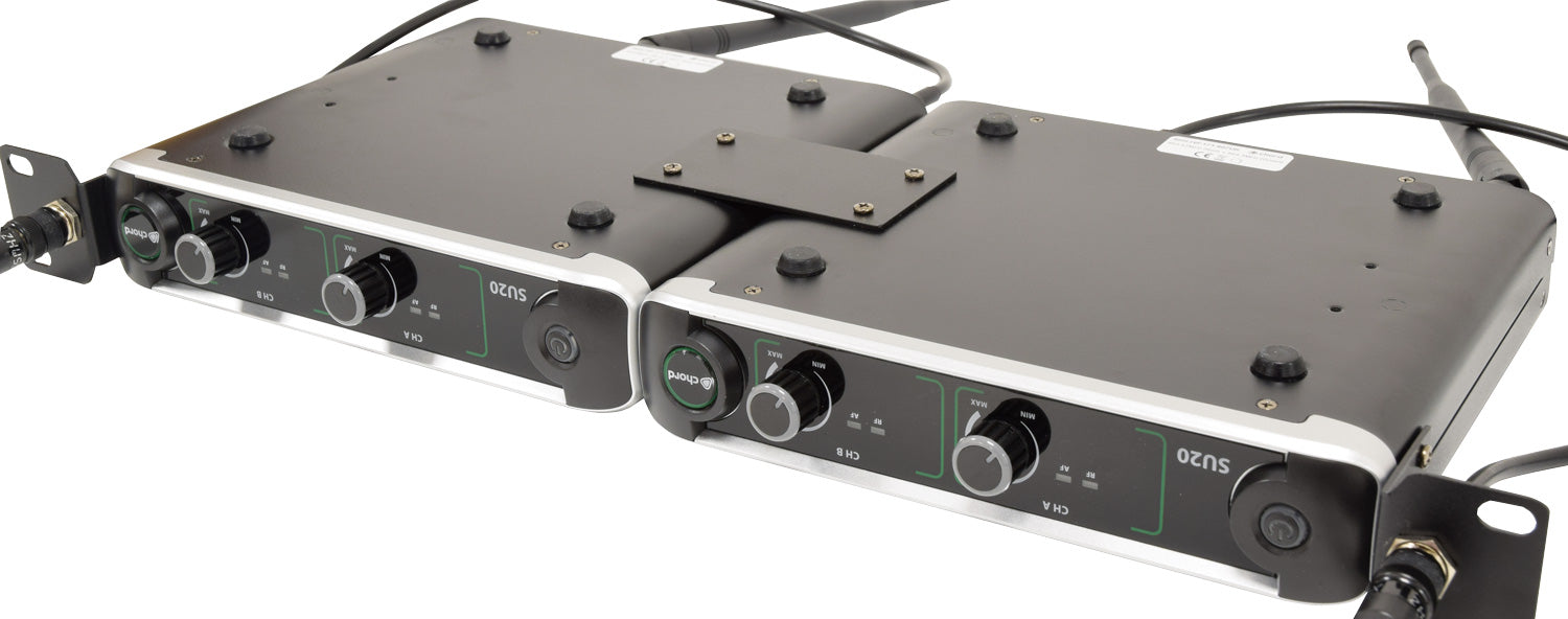 Introducing the SU20 Compact Dual UHF Microphone Sets, a state-of-the-art dual UHF wireless microphone system designed for flexibility and performance. This compact system includes a receiver capable of fitting into a 1U 19" rack space, making it ideal for professional settings.