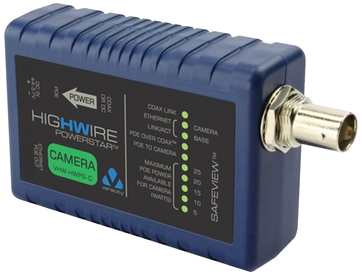 WME: HIGHWIRE POWERSTAR VHW-HWPS-C, Ethernet and POE over Coax Converter, 25W Power Delivery, SafeView Display, Compatible with Existing Cabling