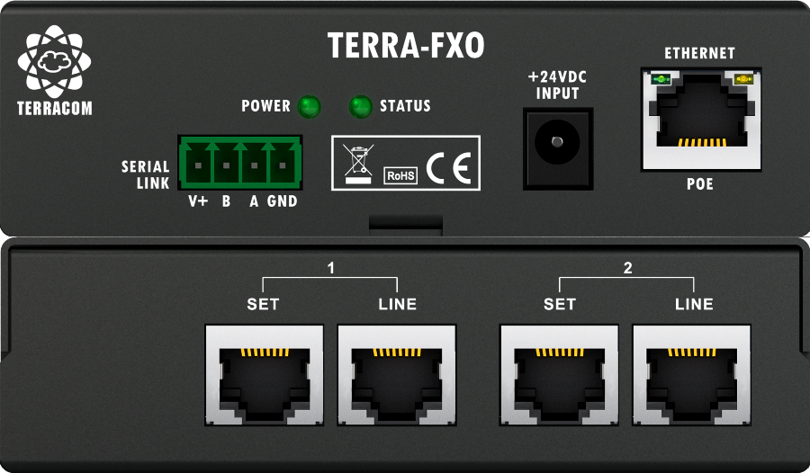 WME: TERRA-FXO, IP POE Telephone Interface Module, 2 Sets of Telephone Lines, PoE, Black