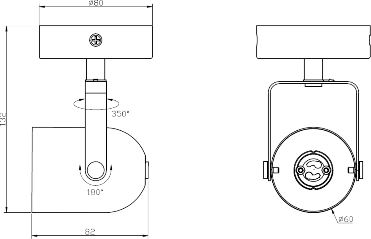 • Single, adjustable directional head with 350° rotation and 180° tilt.