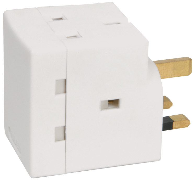 3-way adaptor allowing 3 devices to be powered from a single UK mains socket.