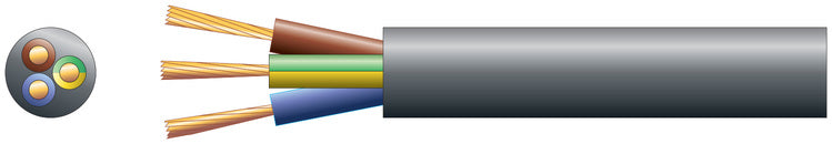 Round profile mains electric cable. Flexible PVC sheath. Suitable for connection of electrical equipment and most light electrical applications. BSI approved to BS6500, VDE approved.