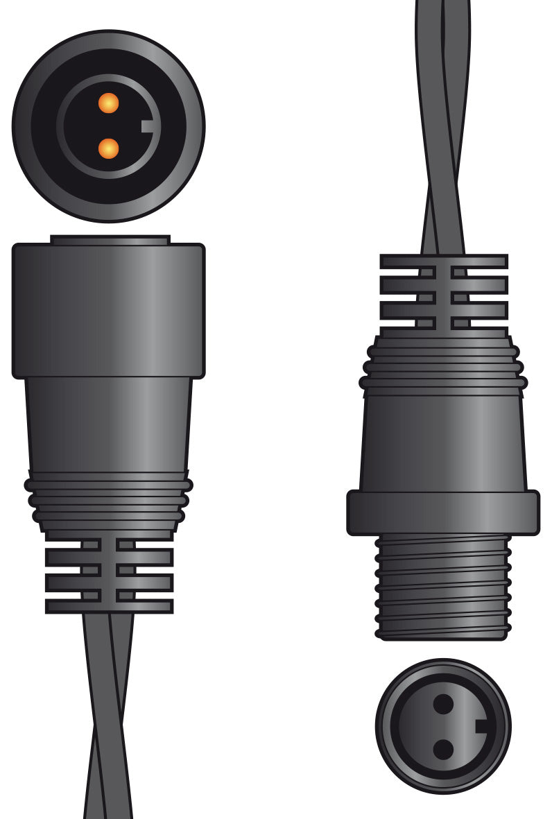 - Weatherproof rubber extension cable, compatible with various LYYT Rubber Connectable string light ranges.