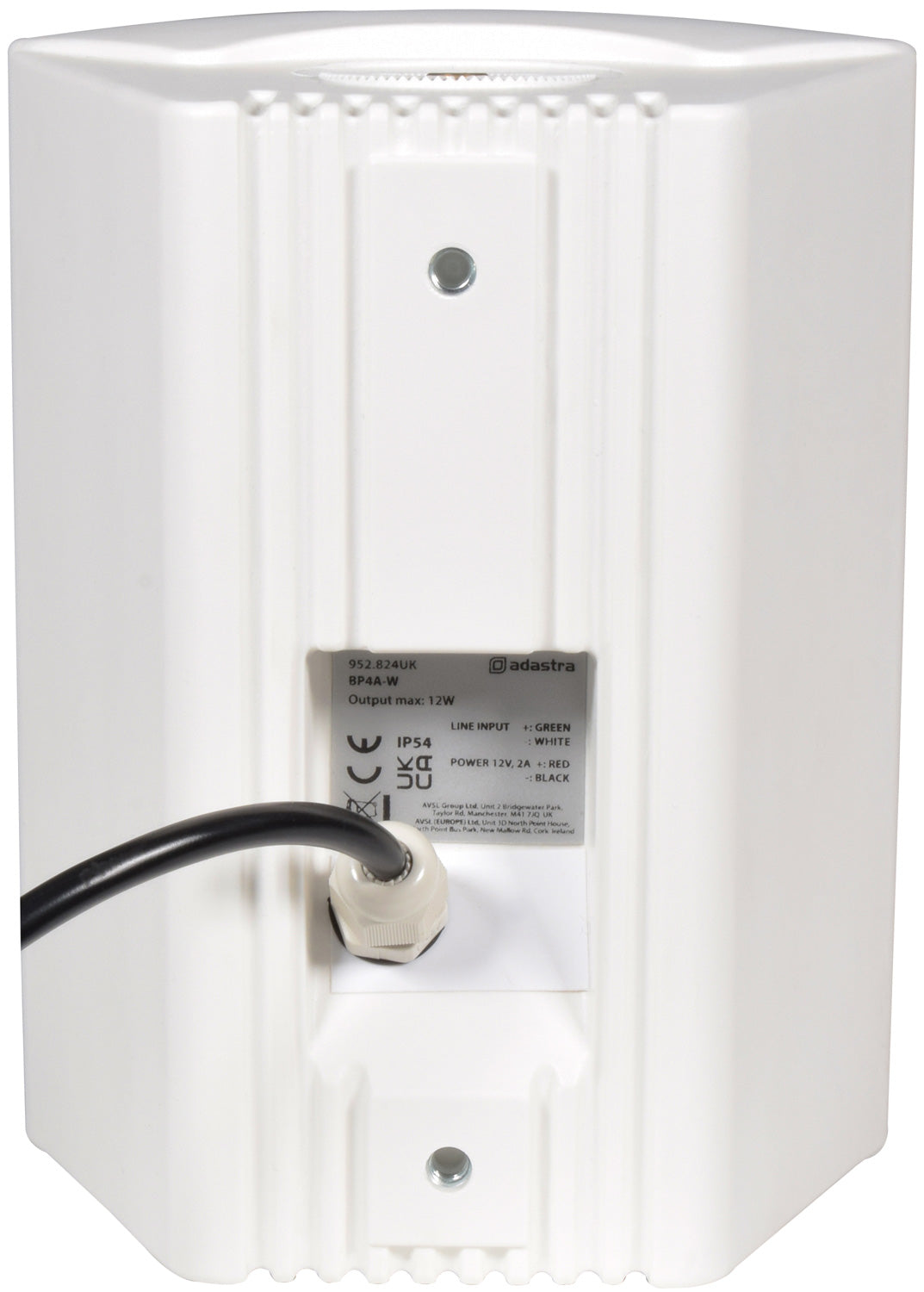 Adastra: 952.824UK, BPA-series 12V Weatherproof Active Speaker, 4" Woofer, 12W, IP54 Rated, Includes Wall Mounting Bracket