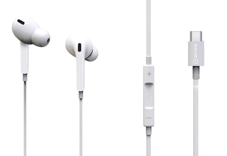 AV:Link: 100.315UK, Digital USB Type-C Wired Earphones, 12g, HiFi Sound, In-Built Digital Chip, In-Line Mic, Compatible with Google & Siri