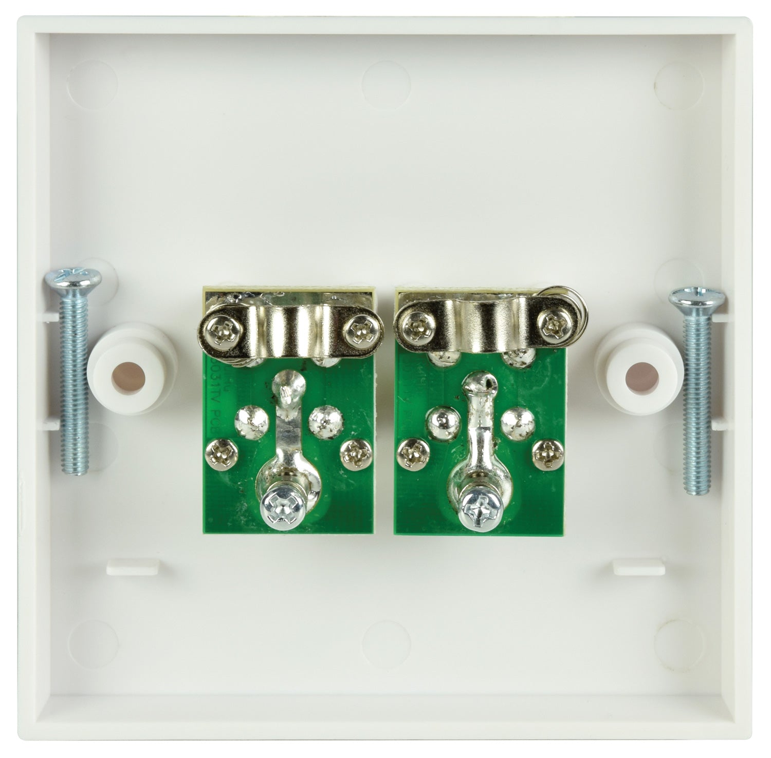 AV:Link: 123.336UK, Double F-Type Screw Wallplate, Flush Mount, Twin Connectors, Plastic, White