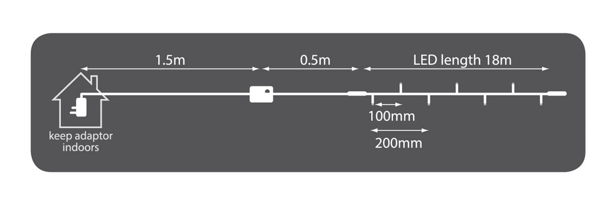 High quality outdoor LED string lights with heavy duty black cable. The 8 pre-programmed sequences allow you to adjust the mode to your preference via the included controller. You may extend the cable from the mains power supply by using our 5m power extension lead.