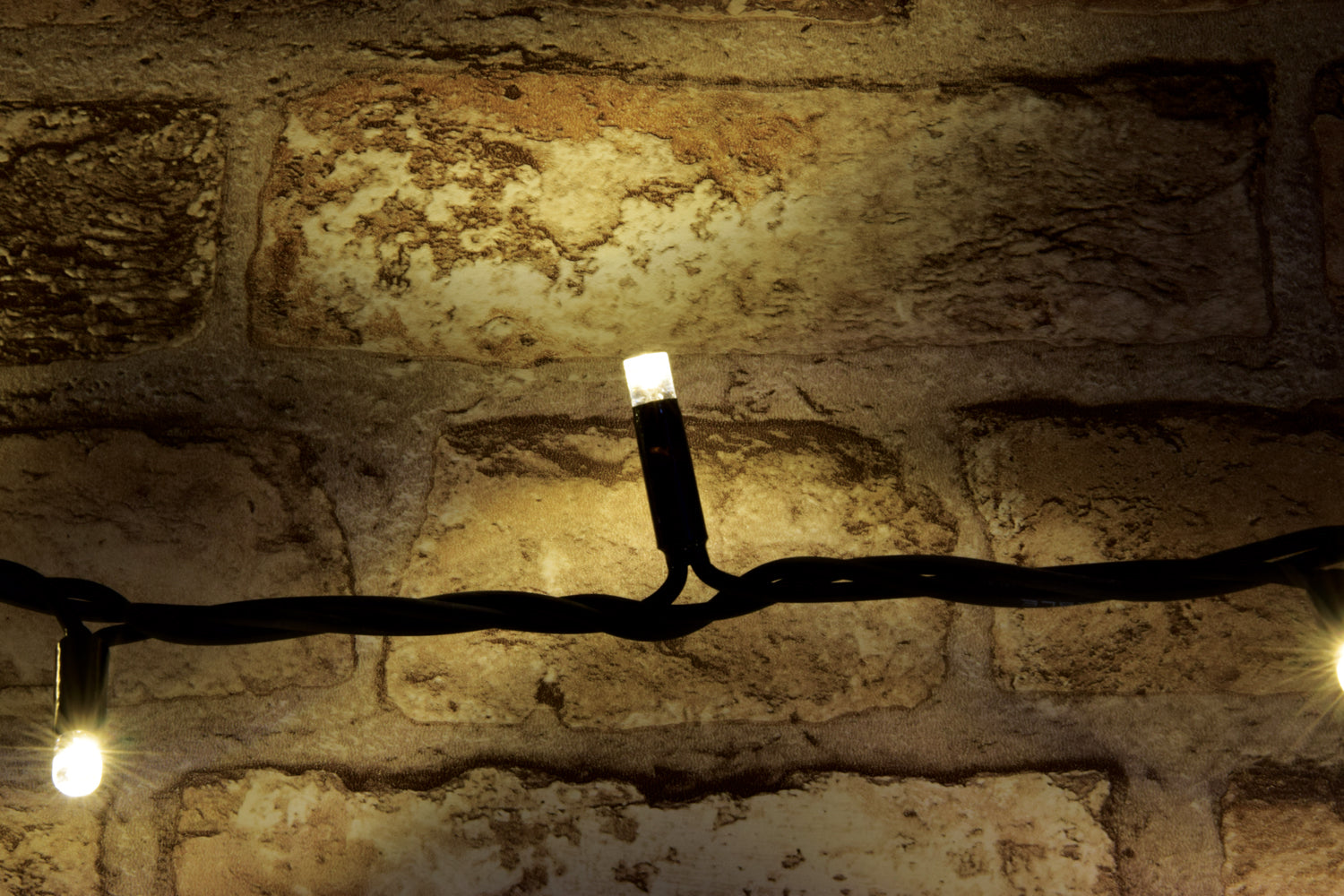 LYYT: 155.404UK, Heavy Duty LED String Lights, 90 LEDs, 10m Warm White, IP44 Rated, Black Cable
