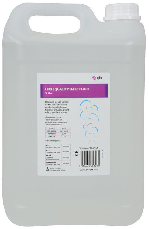 QTX: 160.591UK, High Quality Haze Fluid, 5 Litre, Non-toxic, Clear, Deep White Fog