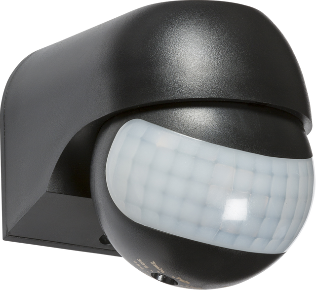 IP44 Mini PIR Sensor (Black, 180°, 12m Range)