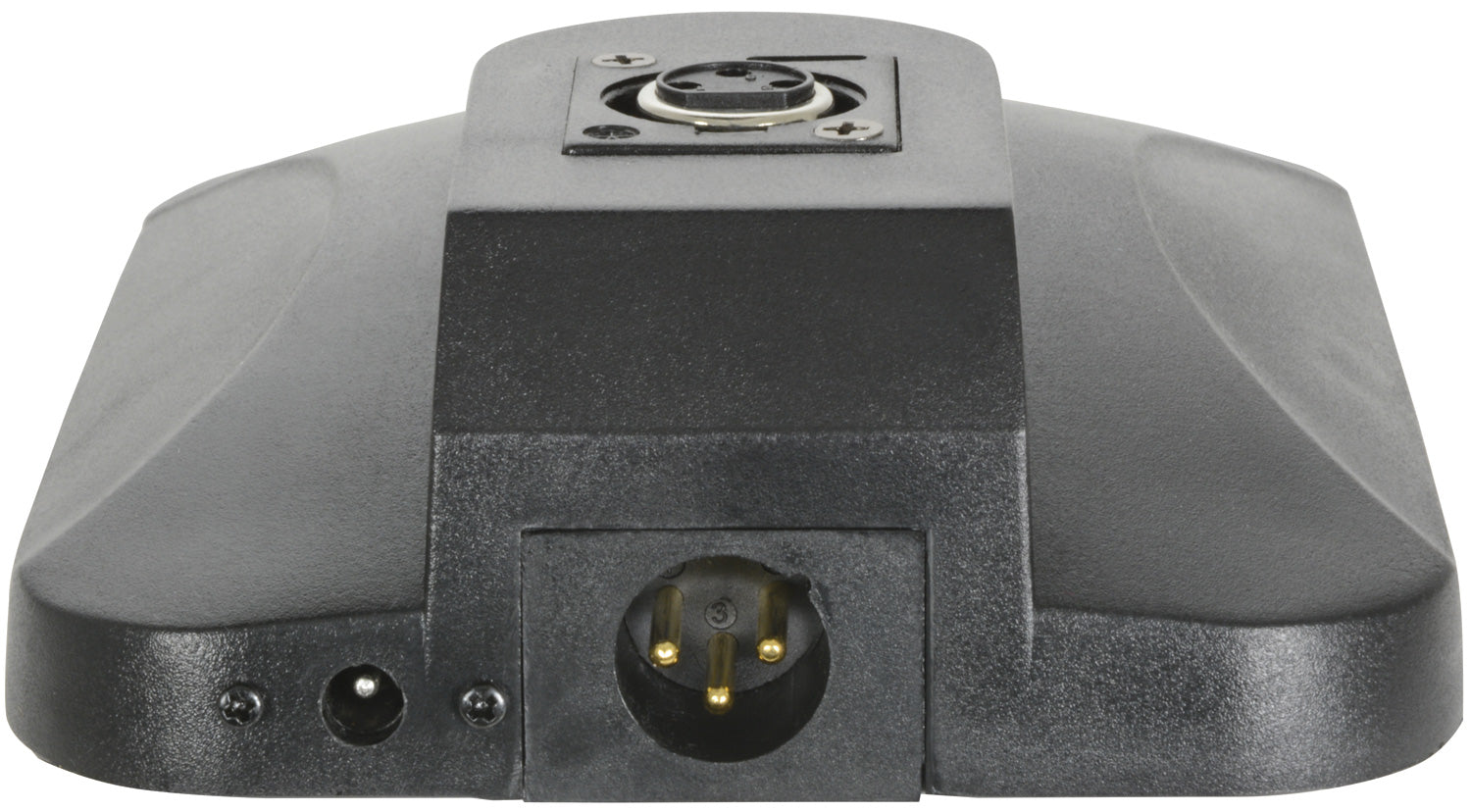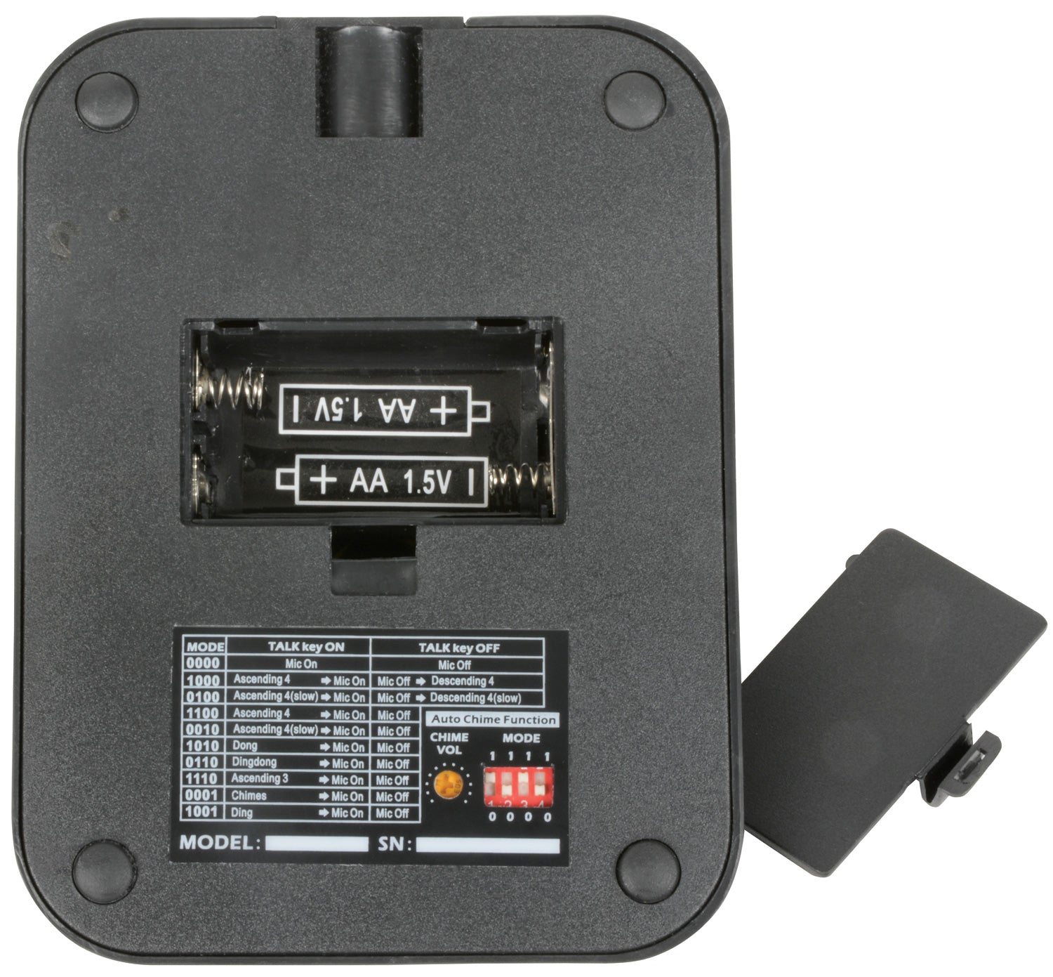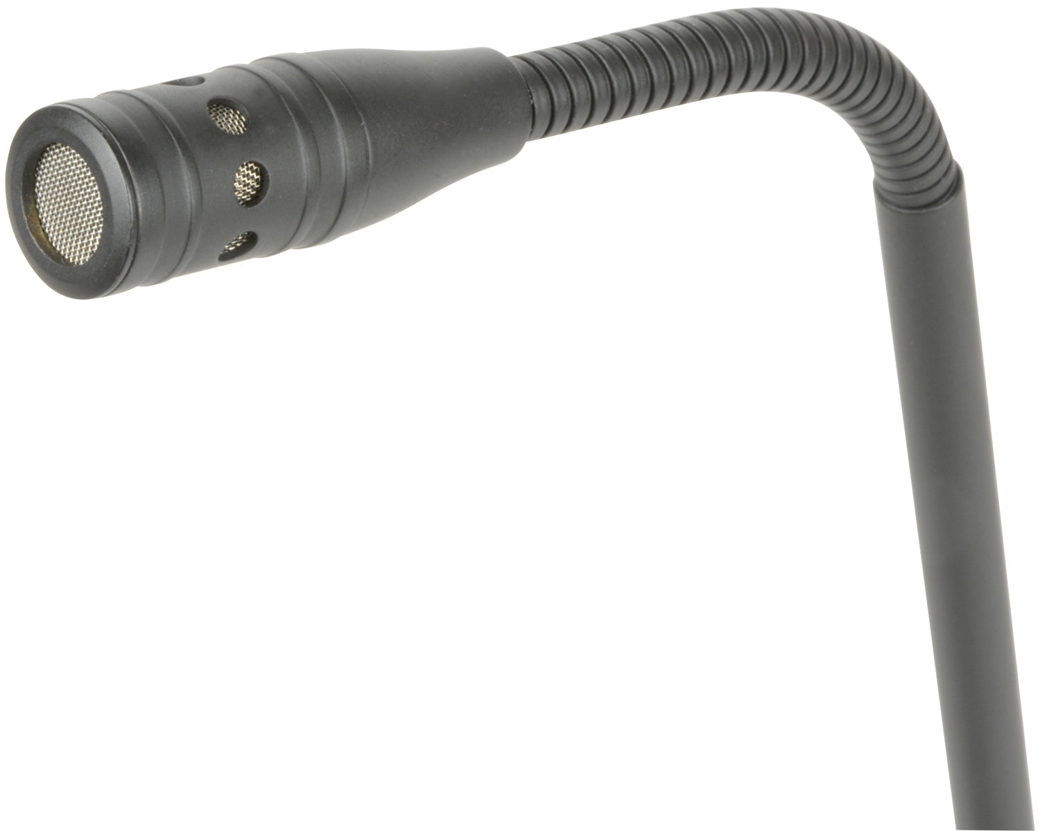 A gooseneck condenser microphone featuring a selectable chime function. This microphone connects to the base via XLR, while the output is also XLR located at the rear. Power is supplied to the microphone capsule either from 2 x AA batteries in the base or from a 5V dc supply via the included USB lead. Additionally, the base features a latching paging button on top and a chime section located underneath. The chime settings can be adjusted using DIP switches, managed by a rotary volume control. Ideal for remote paging and public announcements.