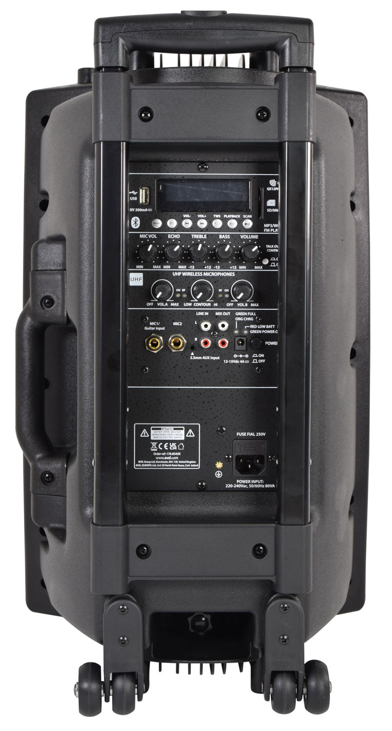 QTX: 178.854UK, Portable PA System, UHF, USB/SD/FM, Bluetooth, 12.8 kg