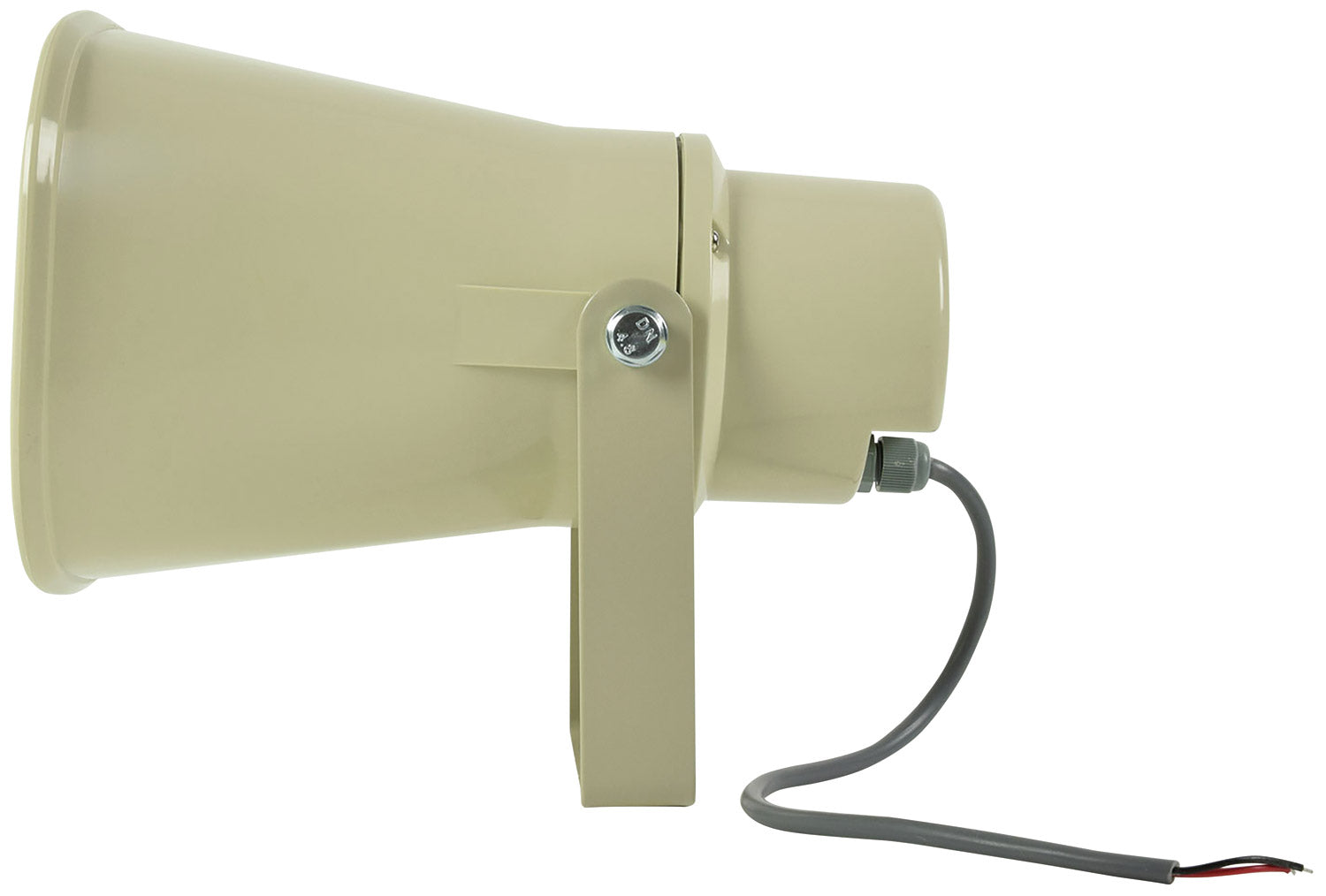 Rectangular shaped 100V line PA horn speakers ideal for general purpose and standard industrial installations. All models are moulded from durable ABS in an ivory colour and fitted with a high performance 100V line matching transformer with 350mm of 2 core double insulated connecting cable.