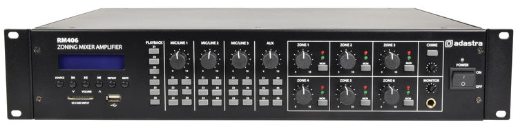Adastra: RM406, 100V Mixer Amplifier, 6 x 40W Class D, USB/SD/FM/Bluetooth, 953.160UK