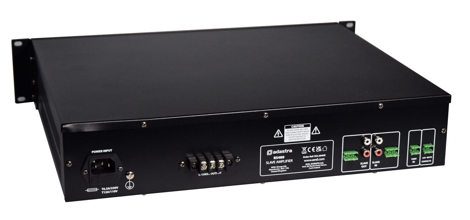 Adastra: 953.204UK, RS Series 100V Line Slave Amplifier, 480W, Rack-Mountable, Class-D, 19"