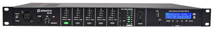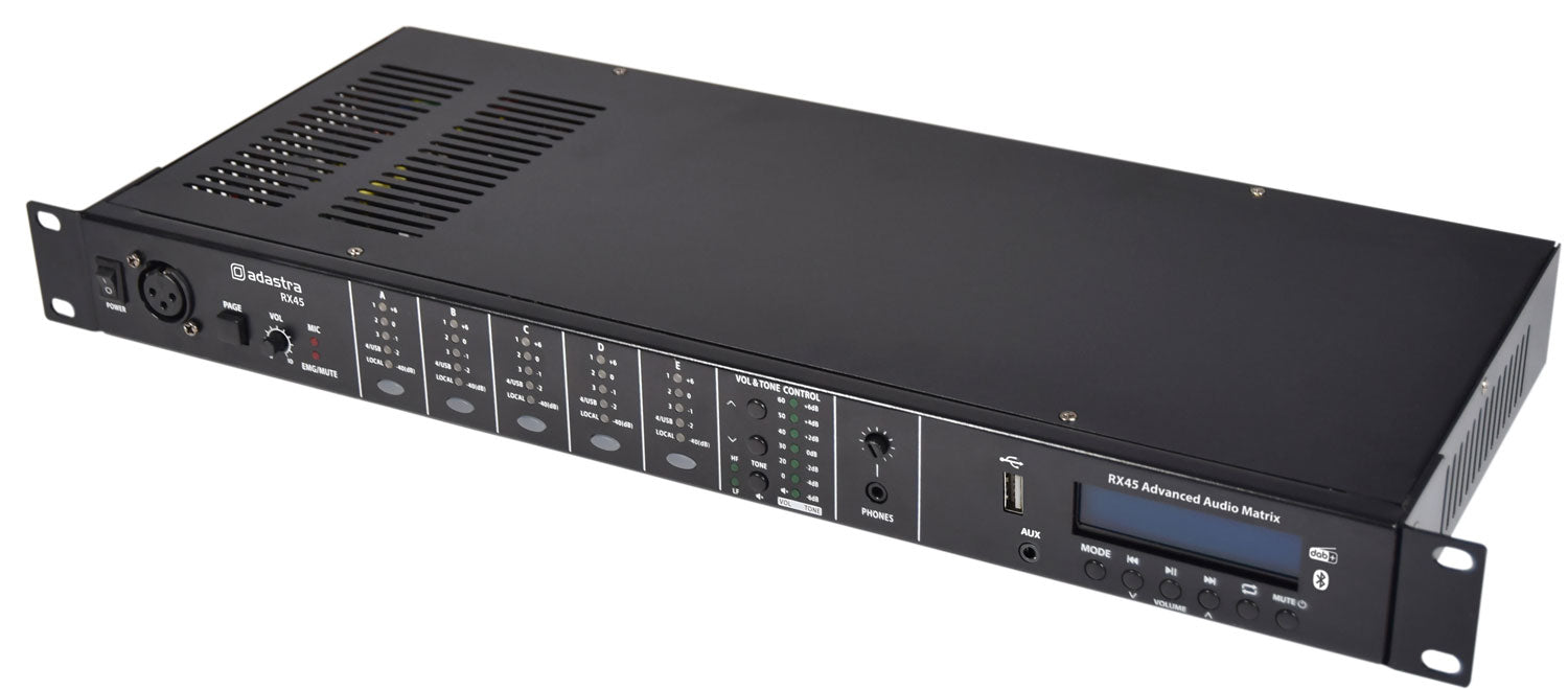 Adastra: 953.046UK, RX45 Advanced Audio Matrix, 4 Inputs, 5 Outputs, USB/DAB/Bluetooth, 1U Rack-Mountable