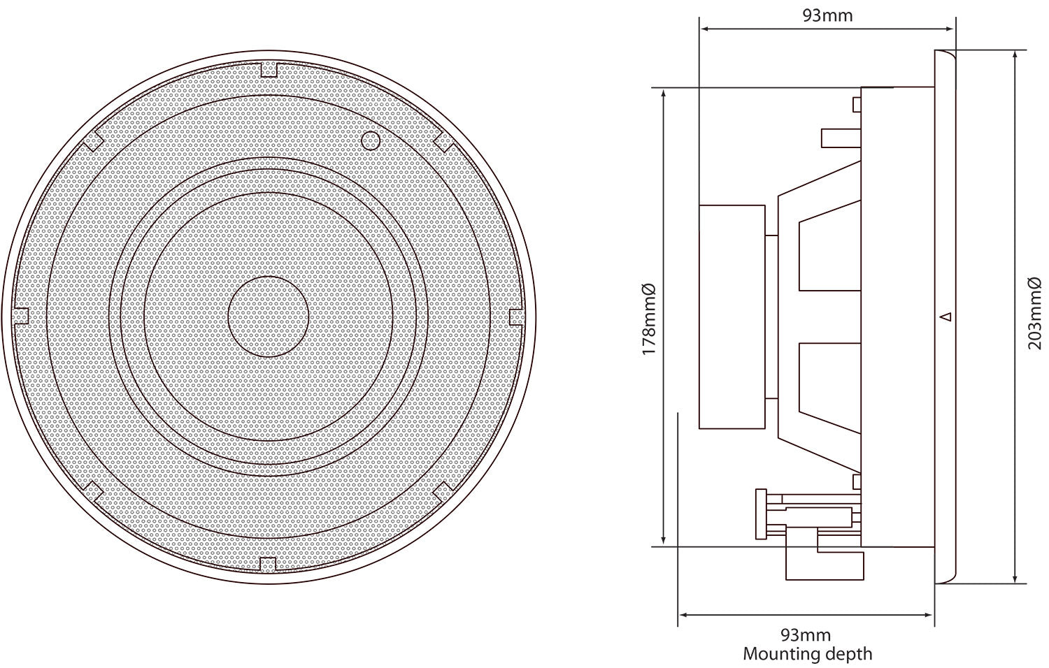 High-grade ceiling speakers featuring a flexible main driver for full range output with extended low frequency response. Both 5.25" and 6.5" models include a mylar tweeter unit for accurate high frequency reproduction. Quick fit spring clamps or 'dog-ear' mounts enable easy installation, resulting in a minimalist profile for a discreet and understated sound system.