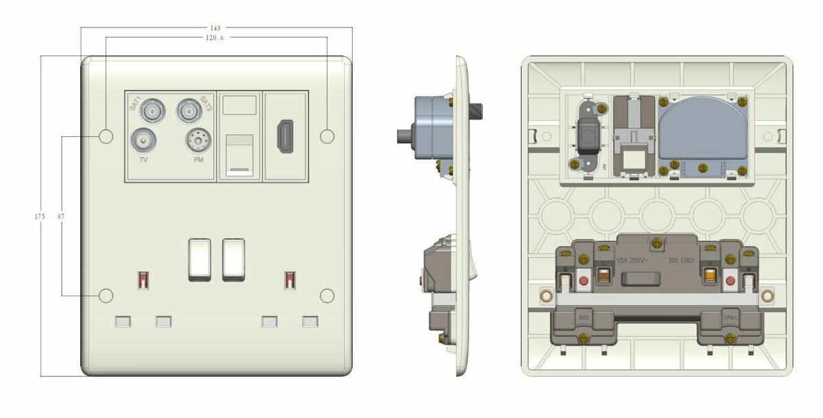 - Compatible with multiple modular inserts: Satellite TV, DAB, Telecoms, Networking, USB Charging.