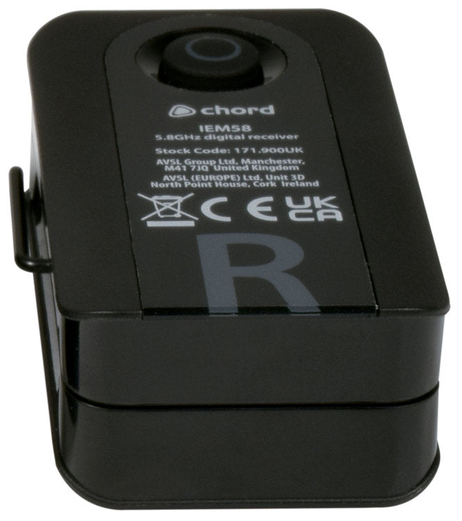 Chord: 171.899UK, Spare Receiver for IEM58 In-ear Monitor System, USB Rechargeable, 5.8GHz Digital Band, 30m Range