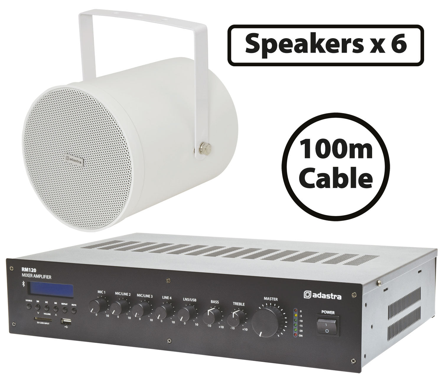 Adastra: 300.142UK, Weatherproof 100V Sound Projector Package, 6 White Speakers